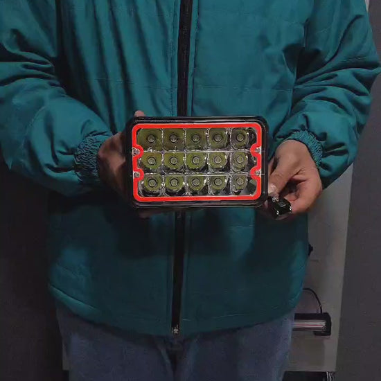 Personaliza tu camión a tu estilo. Esta unidad LED rectangular incluye un halo en 4 opciones de color independientes: rojo, morado, azul o blanco, cada uno disponible en modo fijo o intermitente.